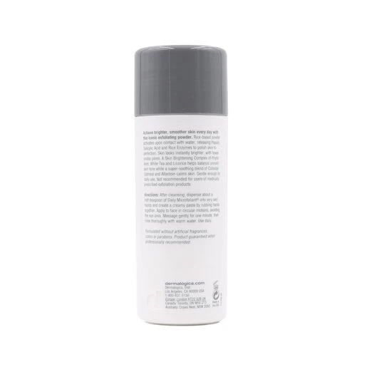 Gentle, daily use exfoliating powder for all skin conditions. Unique Rice-based powder formula activates upon contact with water, releasing Papain, Salicylic Acid and Rice Enzymes that micro-exfoliate dead cells, instantly leaving skin smoother and brighter. Unique Skin Brightening Complex helps to balance uneven skin pigmentation while a super-soothing blend of Green Tea, Ginkgo and Colloidal Oatmeal helps to calm the skin, leaving it extraordinarily clear and refreshed. Gentle enough to use on a daily basis.