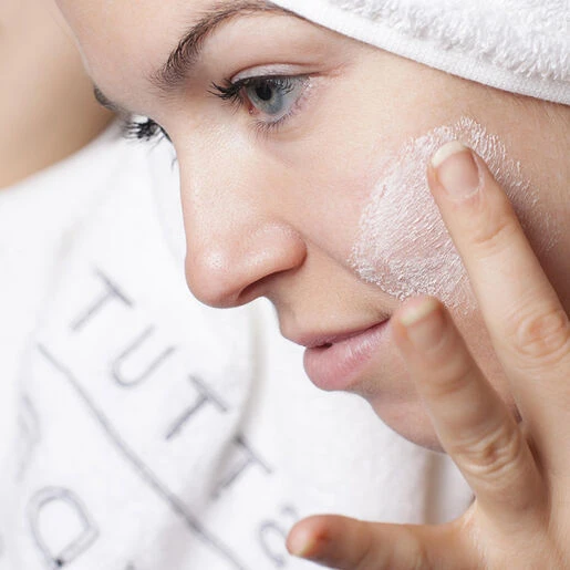 Leave on for a few minutes and gently exfoliate with fingertips.
