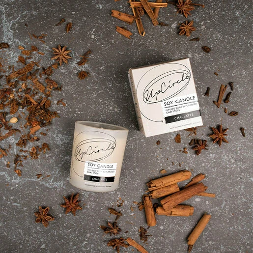 Chai Latte – warming scent of sweet vanilla, cinnamon and nutmeg from chair spices left over used to make Chai Syrups.
